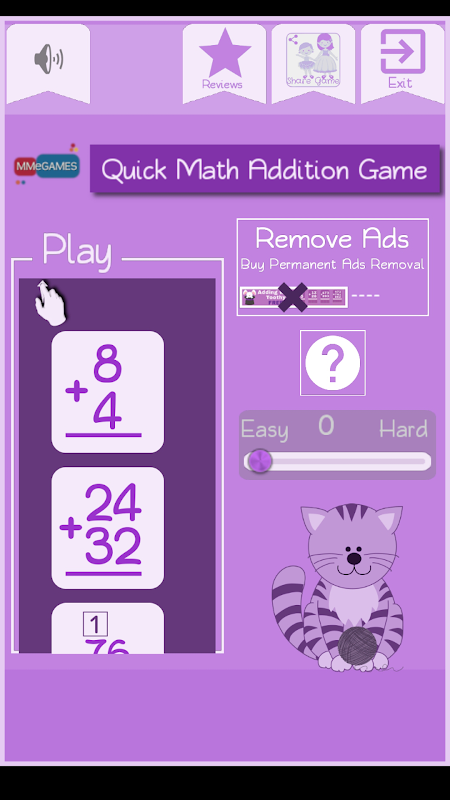 Le calcul est une activité largement pratiquée dans divers domaines. Améliorez vos compétences en mathématiques avec ce jeu d'addition conçu pour les enfants de première année et les personnes âgées qui souhaitent renforcer leurs capacités de calcul mental. Choisissez parmi les niveaux d'addition à un chiffre, avec ou sans addition.