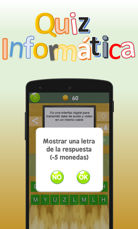 Es un quiz de informática en el que has de acertar cada pregunta de informática que se te haga. Cada pregunta que aciertes recibirás monedas que podrás cambiar por pistas.