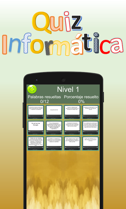 Con este juego de informática puedes aprender vocabulario de informática. Es un juego de preguntas y respuestas en el que has de adivinar la palabra correspondiente a la descrición de cada nivel.