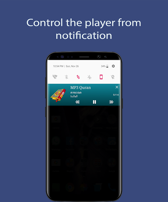 - Contrôlez le lecteur audio du Coran à partir de la notification