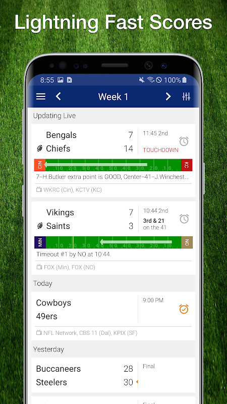 * Never miss a game! Set an alarm and be reminded to tune in.