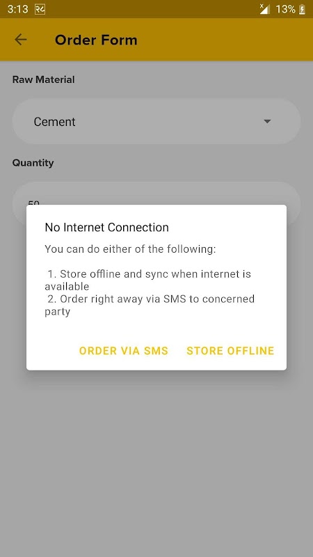* Offline synchronization: No internet? No problem. Even when you are offline, your orders will be placed and will be sent via SMS. The orders in the app will automatically synchronize when you are online.