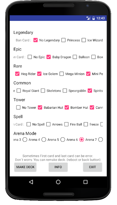 Astuce: Vous pouvez interdire une carte qui n'a pas de case à cocher (sur le premier écran) ou une carte que vous ne voulez pas apparaître. (Toutes les cases ont des cases à cocher et les sorts sont dans Spell! :)