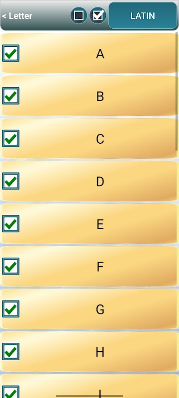 - Alphabet latin ou cyrillique, tout ou seulement la lettre désirée.