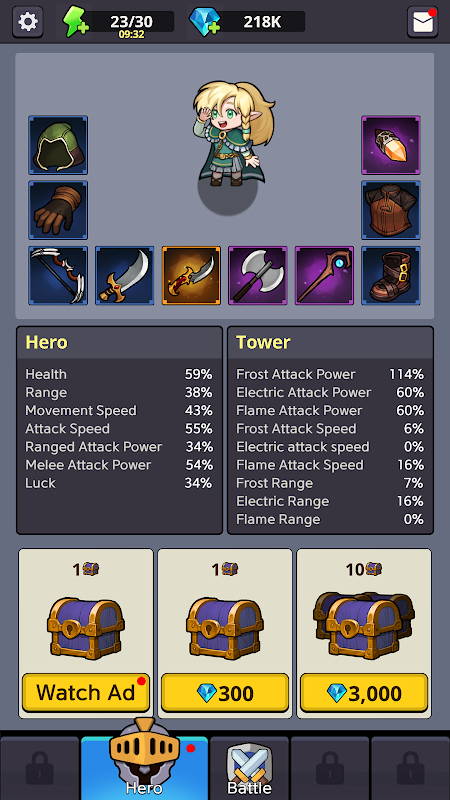 🛡️ Équipez les héros avec un équipement puissant