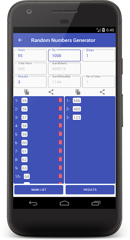Vous pouvez partager ou copier n'importe quel numéro, groupe, dé, mot de passe créé par notre générateur de nombres aléatoires.