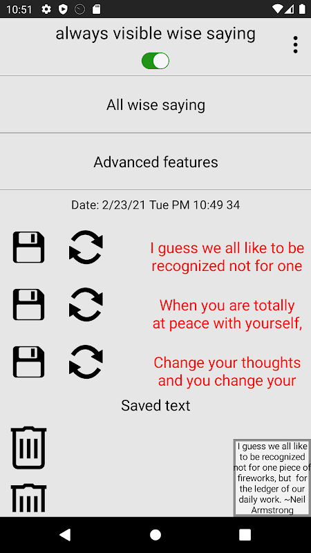 Si vous cliquez sur le bouton de rotation, les paroles sages sont définies au hasard.
