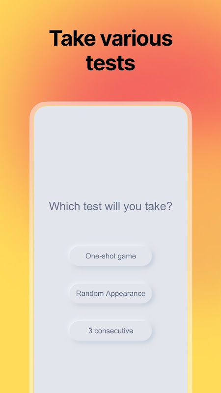 Nous évaluerons vos réflexes lors de parties en un coup, d'apparitions aléatoires et de 3 matchs consécutifs !