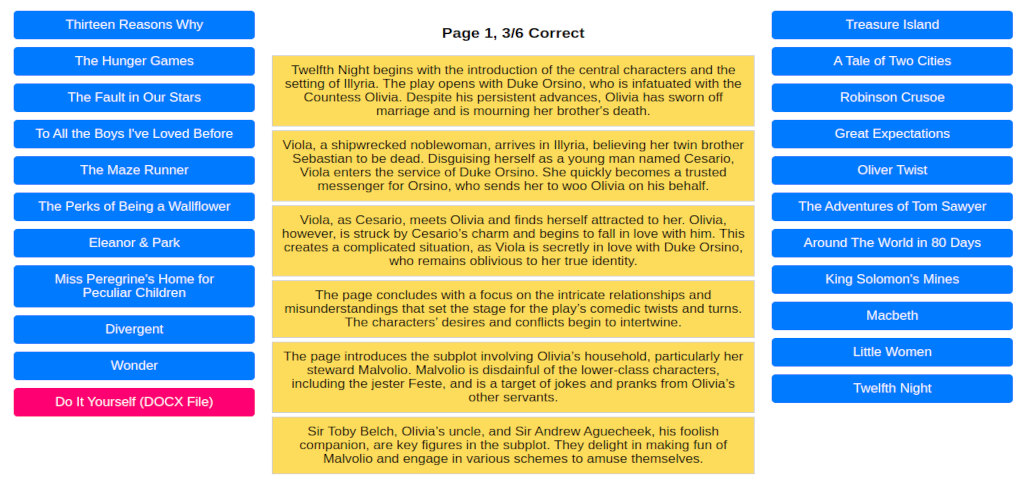 • Une fois les paragraphes correctement disposés, le bouton « Page suivante » s'active, permettant au joueur d'avancer.