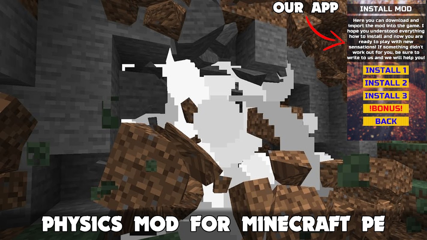 😀🤣Si vous en avez assez de la version régulière de Minecraft et que vous souhaitez diversifier le gameplay, vous pouvez installer l'une de nos modifications. C'est ce dont nous avons parlé plus haut. Mais ce ne sera pas un ajout ordinaire qui ajoute des animaux fabuleux, de nouveaux lieux ou accessoires, mais un mod unique. Vous pouvez télécharger le Physics Mod toujours mis à jour pour Minecraft Pocket Edition 2022 !🤣😀