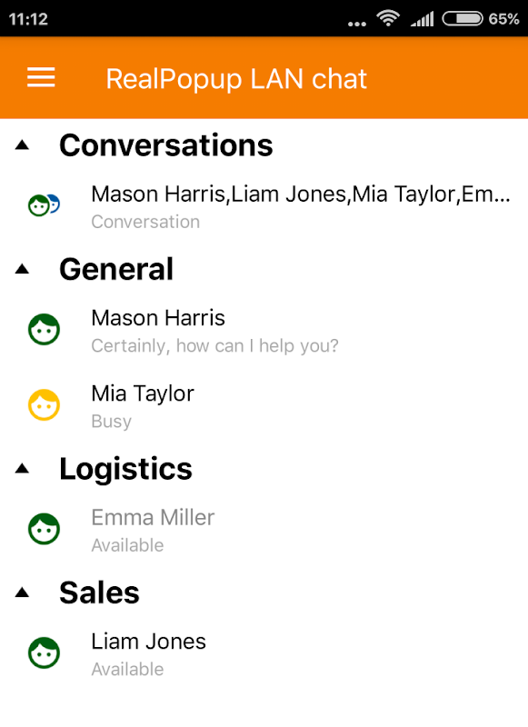 client de messagerie instantanée pour un chat dans les réseaux locaux. Il prend en charge la connexion Wi-Fi et ne nécessite pas de serveur dédié à exécuter. La version Android est applicable pour communiquer entre les versions Windows et Mac de client RealPopup IM.