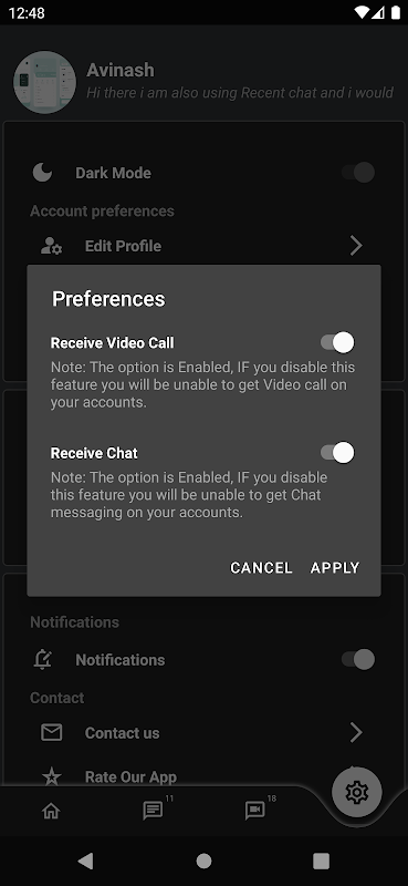 - Recent chat app is very simple and easy to use.