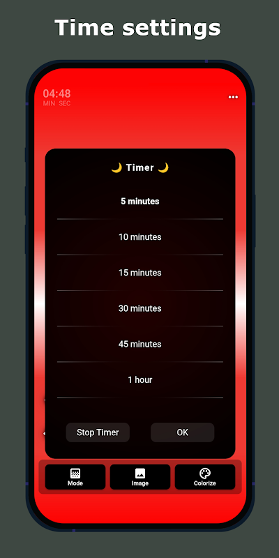 ✔️️ Réglez l'heure à laquelle vous souhaitez que la lumière rouge reste active sur votre téléphone.