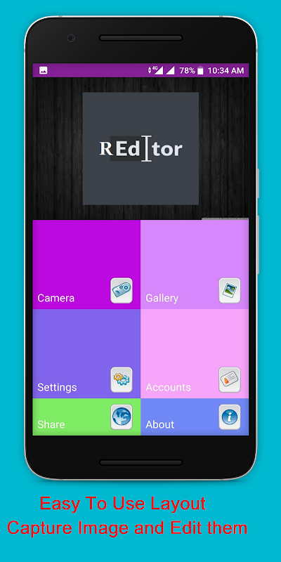 Do you have many different apps on your Android Phone for the purpose of clicking, editing and sharing images? Hey, guess what, now you don't need all of those because ReDitor is here, with all the features packaged into one. So go and clean your phone memory to save your space for other useful purposes.