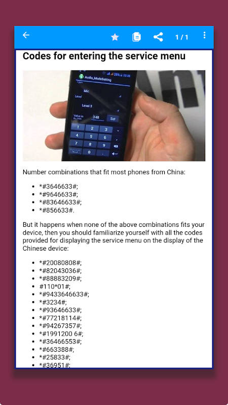 Informations Menu d'ingénierie de référence APK