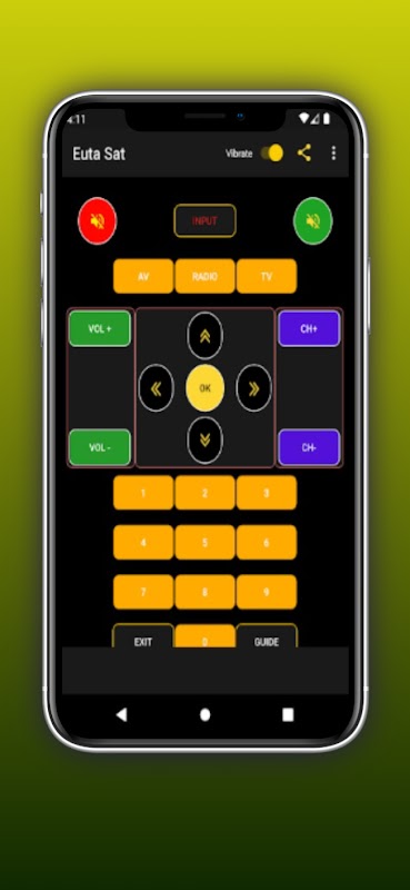 La télécommande pour Eutra Sat est une application Android basée sur l'infrarouge qui peut contrôler à distance le boîtier de configuration Eutra Sat par émetteur infrarouge.