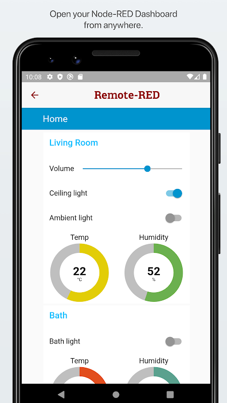 Remote-RED vous donne un accès mobile à votre tableau de bord Node-RED à la maison. Il crée un tunnel entre votre réseau domestique et votre appareil mobile.