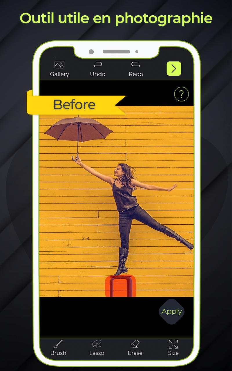 Tout le monde veut que sa photo soit belle et nette. Supprimer les objets 2021 - Supprimer les objets indésirables est devenu très facile d'effacer les défauts ou les objets indésirables sans gâcher votre image. Parfois, vous avez de vieux souvenirs et des photos d'enfance avec des objets indésirables dessus; vous pouvez modifier et supprimer des objets avec cette suppression d'objets impressionnante. Vous disposez d'options de restauration, d'annulation et de partage dans lesquelles vous pouvez partager vos photos modifiées avec votre famille et vos amis, ainsi que sur les réseaux sociaux. L'image est comme un petit souvenir qui durera toute une vie, alors ne faites pas disparaître vos souvenirs. Si vous avez des lignes sur vos photos, cela vous aidera à vous débarrasser de ces lignes ou de tout autre défaut qui pourrait obstruer la beauté de vos moments mémorables enregistrés dans une image.