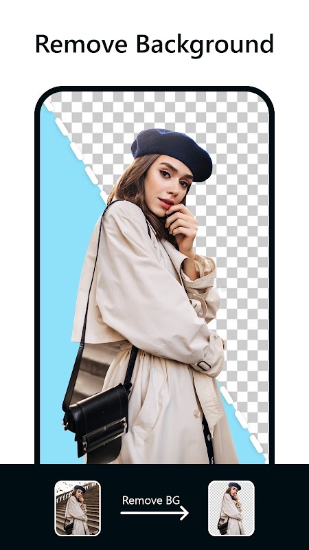 1. Remove background automatically: Use a photo from the gallery or take a pic with the app's Camera. After that, the pic will be automatically erased from the background quickly.