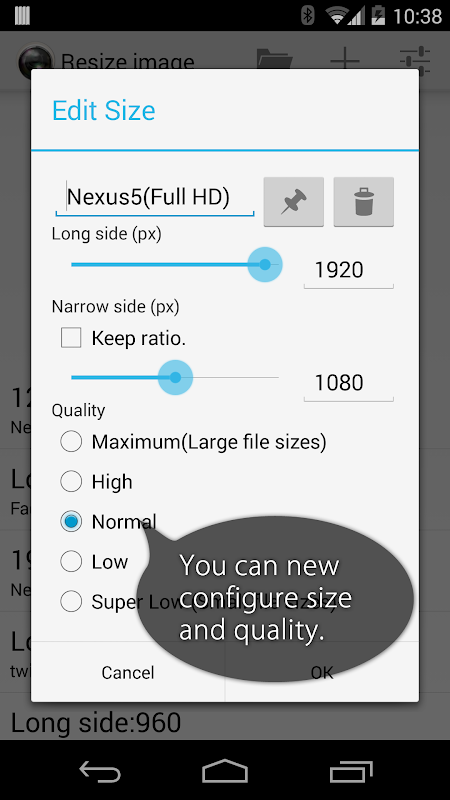 You can configure new size and quality.