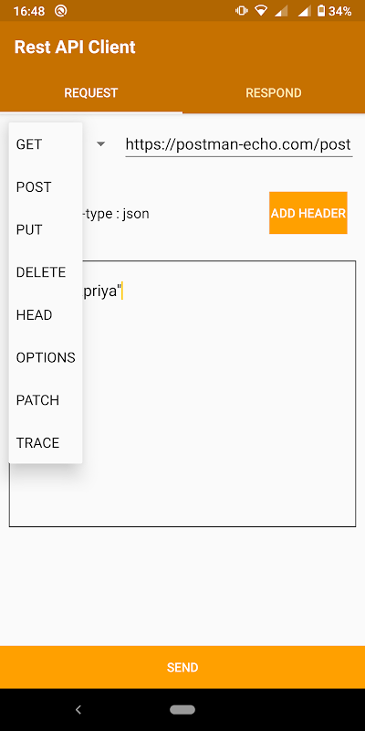 - Request and check response of REST API with GET, POST, PUT, DELETE, PATCH, OPTIONS, HEAD and TRACE methods.