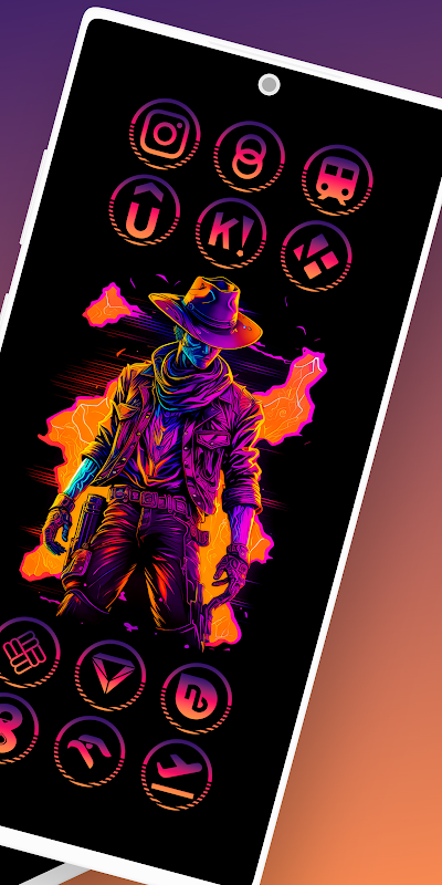 Retrowave style icons in gradient cutted ring graphic perfect for your android launcher using this minimal , flat Icon pack
