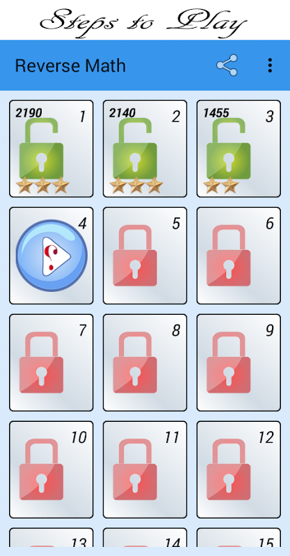 En mode solo, les mathématiques inversées proposent 500 niveaux uniques, chacun comportant 10 questions générées aléatoirement. Pour passer au niveau suivant, l'utilisateur (élève) doit répondre correctement à 7 questions. Son score sera de 1, 2 ou 3 étoiles en fonction des réponses correctes. Le niveau suivant, plus difficile, sera ensuite débloqué. Cela permettra d'améliorer la capacité et la rapidité de réflexion, notamment chez les enfants.