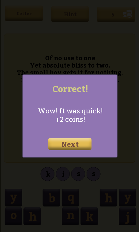 Solve the riddles, put the letters in a correct order and receive coins in Appease game!