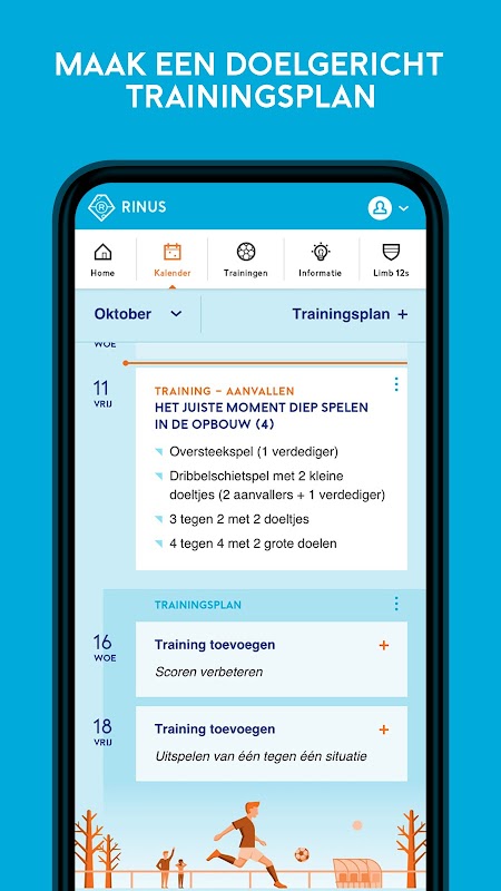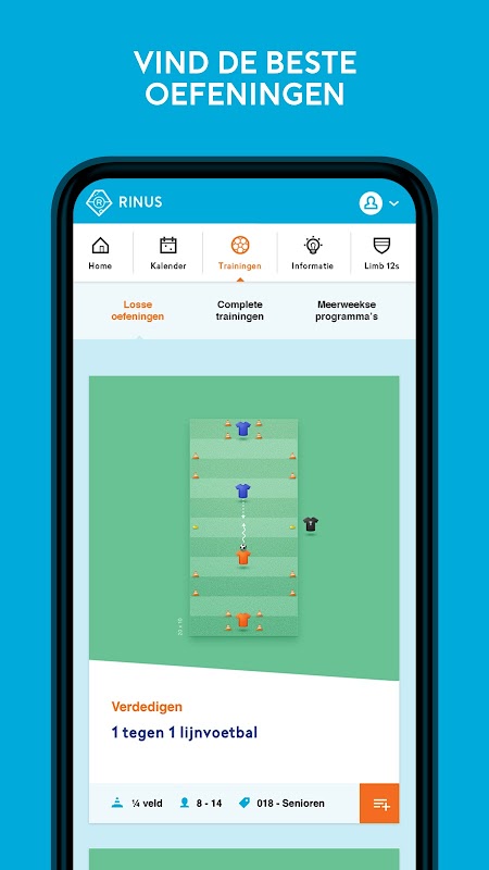 « L'application fait partie de Rinus KNVB ASSIST, a développé la plate-forme de connaissances pour tous (jeunes) formateurs aux Pays-Bas. Il contient des exercices, des séances d'entraînement et plusieurs programmes de semaine.