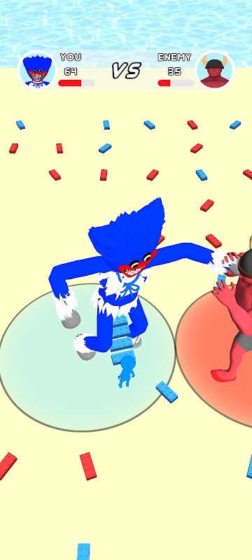 Hurry up in collecting blocks so that your robot becomes stronger and can fight back against the opponent!