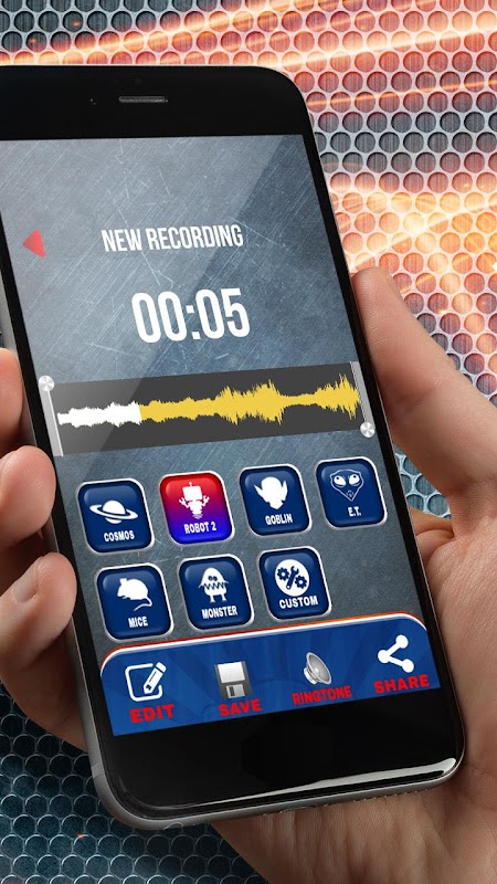 Si vous recherchez une bonne application de changeur de voix, nous avons la réponse parfaite. Nous garantissons que ce logiciel d'édition audio satisfera tous vos besoins de manipulation sonore. Avoir une nouvelle sonnerie ou tous les sons impressionnants que vous pouvez imaginer en un clin d'œil. Utilisez les fonctions uniques pour changer le ton de votre voix, régler l'écho ou le niveau de distorsion. Vous pouvez même enregistrer un message pour votre répondeur avec cette application polyvalente. Obtenez l'application d'éditeur de voix la plus étonnante! Nous vous promettons de nombreux moments drôles avec vos amis et votre famille! Avoir le plus grand stand de son à la paume de votre main.