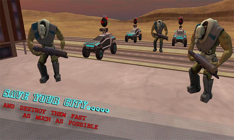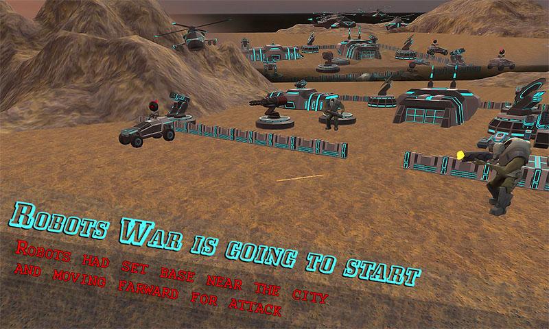 Robots war is going to start; Enemy robots had set the base near the city and moving forward to attack. Control your robot and your duty is to save your city and destroy them fast as you can.