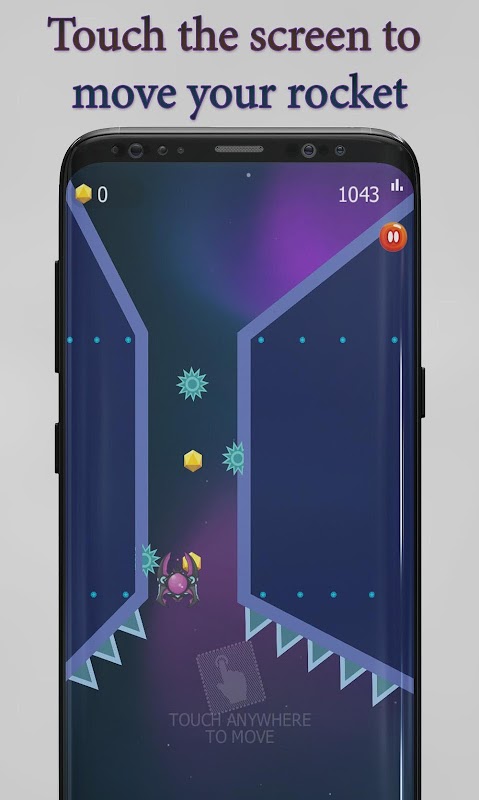 Rocket it, the free arcade space game, comes with a clean and neat design and the interface is so user-friendly and the gameplay is so easy to learn that you will get the whole idea as soon as passing through the first couple of obstacles. Speaking of the easy to learn gameplay, you just need to use your finger to control the spaceship, move it to the right and left or even increase the speed.
