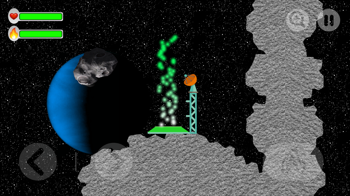 Un jeu amusant d'adresse où vous devez apporter l'atterrissage de la fusée sur le palier sans heurter les rochers et les astéroïdes.