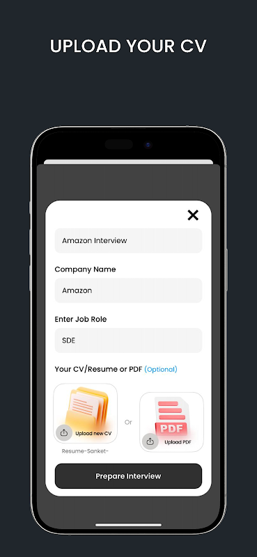 Analyse de CV – Téléchargez votre CV et Role Prep adapte les questions d'entretien en fonction de votre expérience et de votre rôle cible.