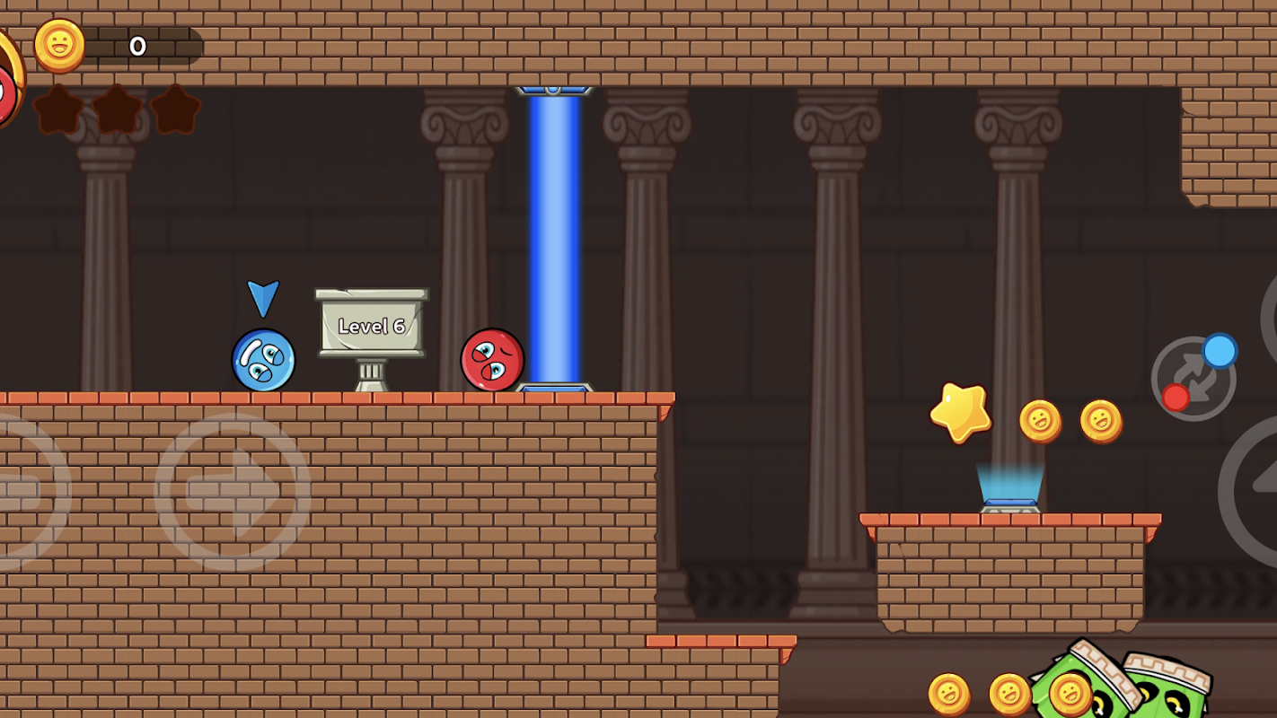 - Appuyez sur le bouton de contrôle pour déplacer la balle rouge et bleue