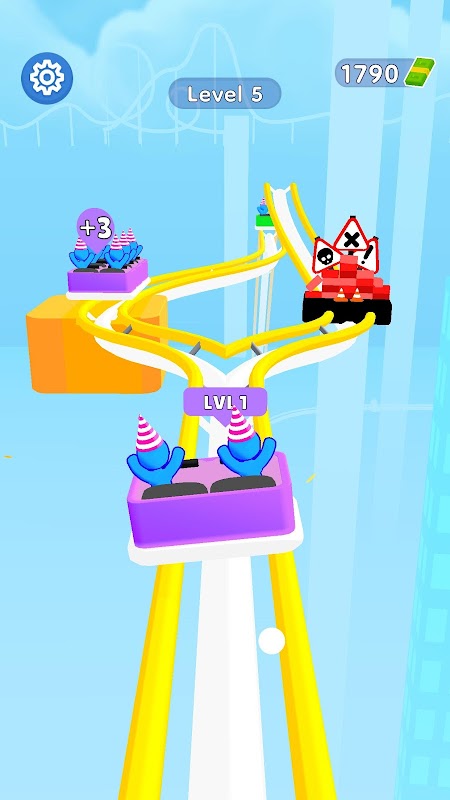 Les joueurs peuvent collecter des pièces pour améliorer leurs montagnes russes et les rendre plus rapides, plus hautes et plus excitantes.