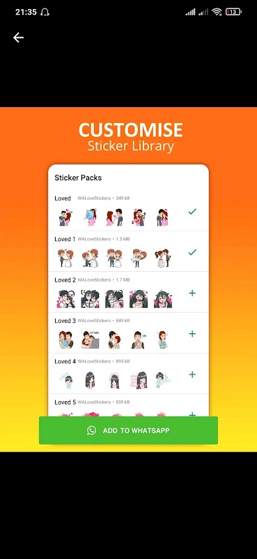 + Install this (Romantic stickers : WASticker for Lovers) app.