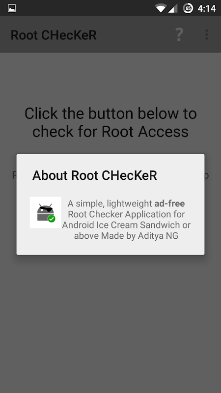 A simple, lightweight, Ad-Free Root Checker Application for Android Ice Cream Sandwich or above.