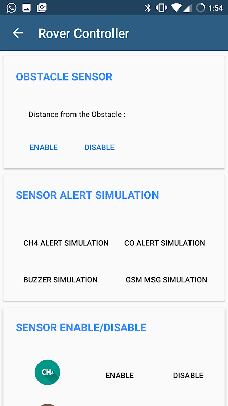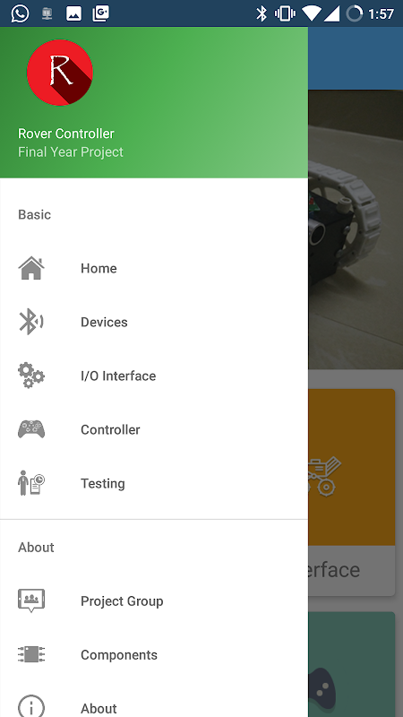 The App is designed as a final year BE project. It is used for remote controlling of a rover which is powered by an Arduino UNO. Bluetooth communication is used between Android and Arduino.