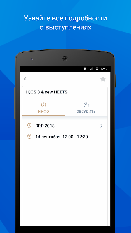- Задавать вопросы спикерам и добавлять их материалы в избранное;