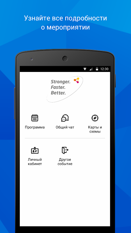 - Получить информацию о конференции (расписание, карта, спикеры и др) и следить за обновлениями в режиме реального времени;