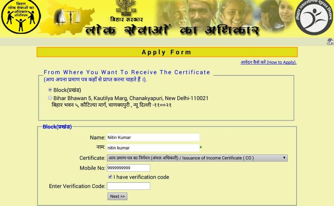 Apply for Caste , Income and Residence Certificates in Bihar