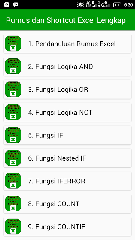 Excel Complete Formula & Shortcut Application est une application qui contient un didacticiel sur la façon d'utiliser les formules et les fonctions Excel. Cette application vise à nous faciliter l'apprentissage des fonctions et formules Excel.