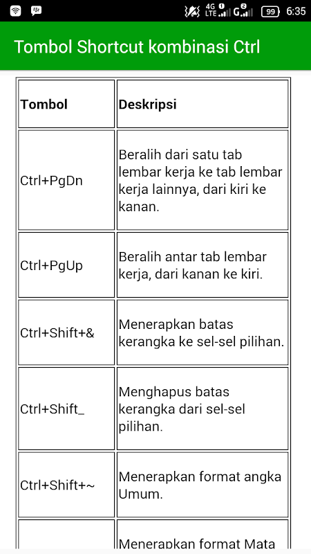 En plus de contenir une collection de didacticiels sur l'utilisation des formules Excel, l'application Excel Complete Formula & Shortcut propose également une collection de touches de raccourci / raccourcis clavier qui peuvent faciliter et accélérer la fin d'un travail.