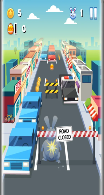 Votre lapin de compagnie pour faire un géant ! Dans le jeu Run Rabbit Run, vous aiderez à naviguer dans les rues bondées pour collecter des pièces et des œufs de Pâques. Vous n'avez que trois vies dans cette course sans fin. Assurez-vous d'éviter les voitures et les obstacles ou vous les perdrez tous plus tôt que prévu. Prix des pièces, vous pouvez acheter des accessoires sympas tels qu'une planche à roulettes, des patins à roulettes ou une fusée.