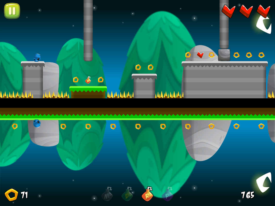 Run Run Robot: Mirror Mayhem est étonnamment facile à jouer ! Touchez le côté droit de l'écran pour sauter et le côté gauche pour rouler. Synchronisez vos sauts pour naviguer sur les plateformes instables et utilisez la bille roulante pour fracasser les caisses, les rochers et les ennemis. N'oubliez pas de récupérer les cœurs et les bonus en cours de route pour améliorer les capacités des robots !