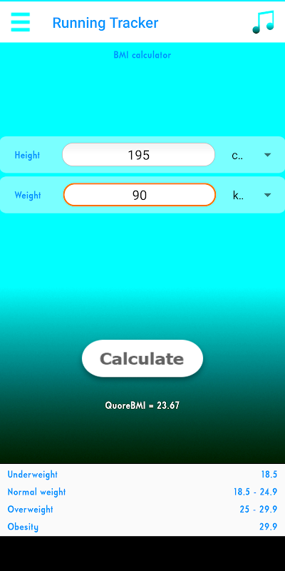 Cette application contient une calculatrice d'IMC. L'IMC est défini comme la masse corporelle divisée par le carré de la hauteur du corps. Il représente l'indice de masse corporelle et vous donne une indication si vous avez un poids santé ou non.
