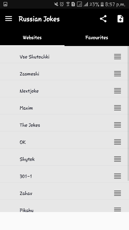 • Favorite Russian Jokes webistes in a separate tab for a quick and easy reading.