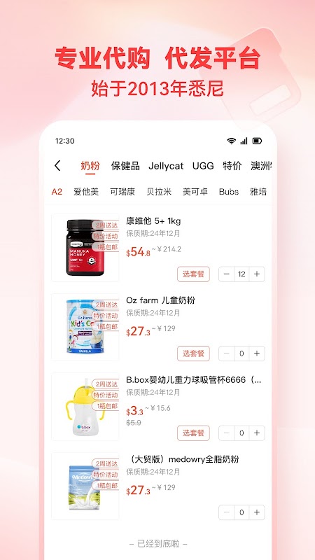 Plateforme australienne de services d'achat professionnels de lait en poudre et de produits de santé